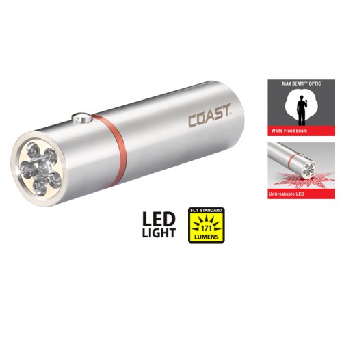 The Stainless Steel body of the A20 flashlight is both attractive and functional. It makes an elegant gift and is great for the home, in your brief case, purse or glove compartment. Coast's Max Beam Optic System combined with 6 high quality LED's gives you a broad, diffused beam that lights up a large area with no dark spots. Built tough, an impact-resistant, stainless steel casing resists rust and corrosion and is easy to clean, making it a favorite in the workshop as well. Tested and rated to ANSI/FL1 standards, the A20 also features unbreakable LED's and rubberized O-ring for reliable water resistance and durability. Backed by Coast's lifetime guarantee against defects in materials and workmanship.