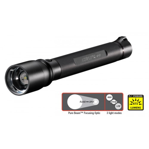 We replaced our signature Red Ring of Quality™ with black and subdued the Coast logo to create a tactical style that will fit right into any situation where stealth and concealment are necessary. A quick cycle switch allows you to select between a high output setting of 615 lumens, a high powered strobe mode, or a low output of 64 lumens. Coast's Pure Beam Focusing Optic System with Fingertip Speed Focus Control provides superior beam consistency from spot to flood, with no dark rings typically associated with focusing flashlights, and you can lock the beam focus in any position you want with our Beam Lock System. The Bulls Eye spot beam pattern gives you a great focused spot with a maximum beam distance of 269 meters (882 feet), while producing an outer ring of flood light which allows you to see a broader area to the sides. Built tough, an impact-resistant, lightweight aluminum casing resists rust and corrosion. Tested and rated to ANSI/FL1 standards, the HP17 also features an unbreakable LED and rubberized O-ring for reliable water resistance and durability. Backed by Coast's lifetime guarantee against defects in materials and workmanship.