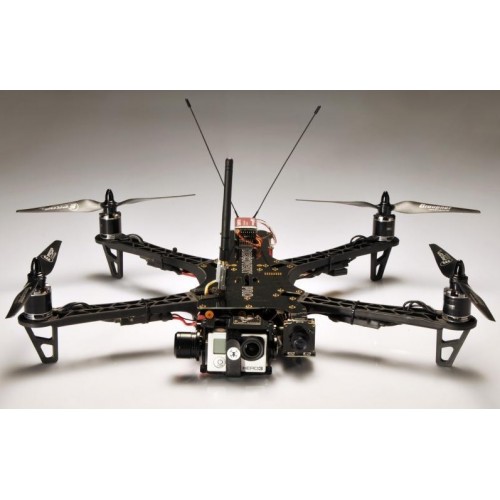 The all-in-one package. If you start from scratch with FPV, this is what you need. Includes remotes, batteries, chargers, quadrocopter, video goggles, batteries and small accessories. A few hours of build time and you're up and running - or you can have us build it for you.