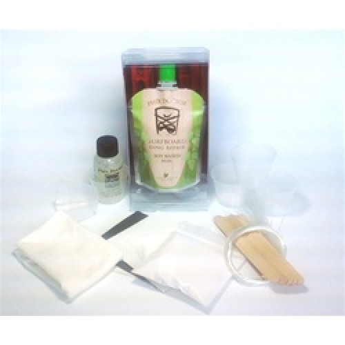 PhixDoctor’s SuperSoy® Epoxy Repair kit introduces the highest bio-content epoxy resin available anywhere. Odorless, non-toxic* ultra clear epoxy resin packaged in a flexible container that’s 1/26th the carbon footprint of rigid plastic bottles and 72% lower landfill impact! Bamboo fiberglass, nature’s carbon fiber comes together with Soy based resin to form a strong and natural combo for the highest quality, lowest impact repair ever. Finally you can single handed save the earth!